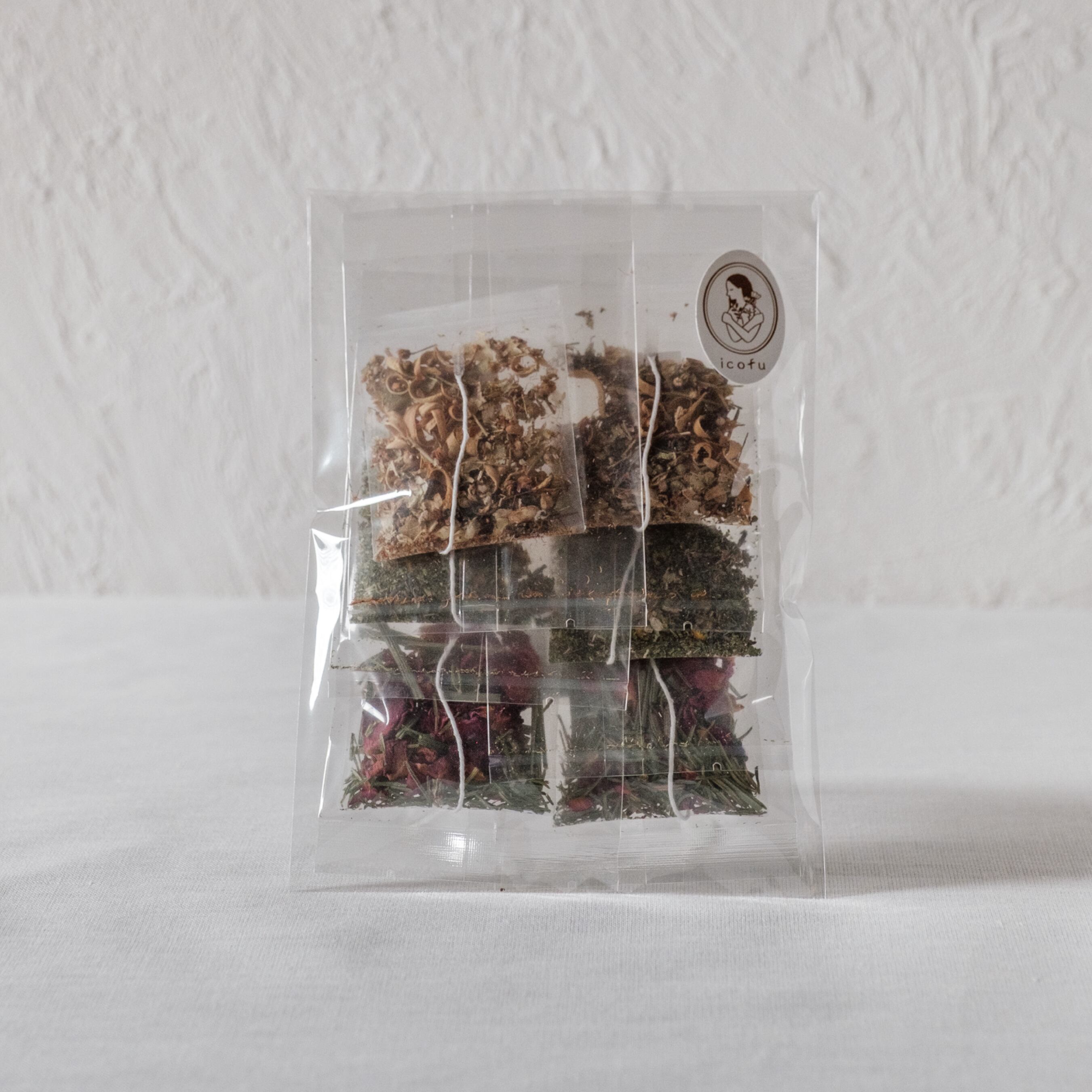 有機レモンバーム(イタリア産)、有機ベルベーヌ(イタリア産)、有機パッションフラワー(イタリア産)、有機カモミール(エジプト産)、有機ラベンダー(フランス産)