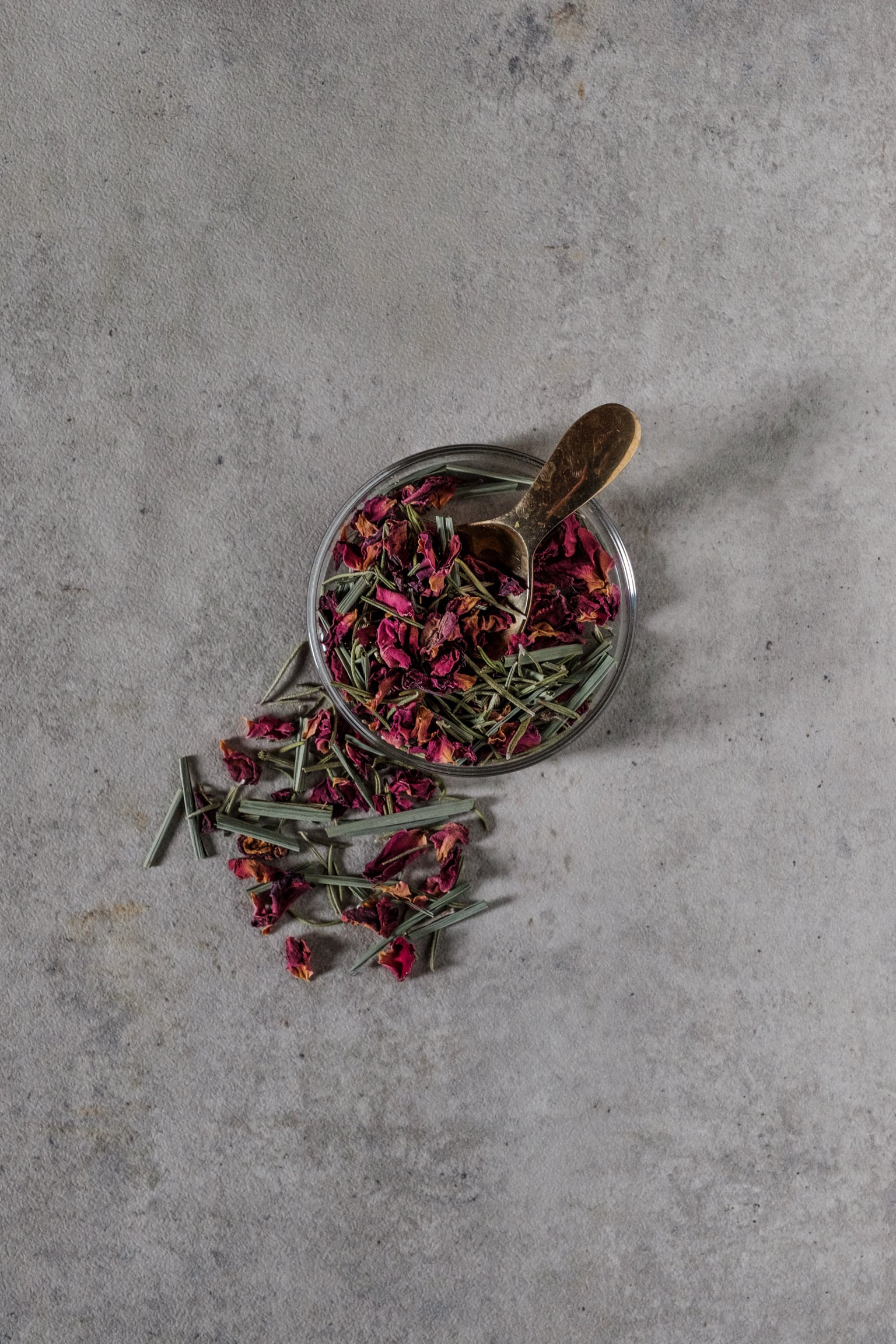 ローズレッドペタル(パキスタン産)、レモングラス(国産)、スギナ(中国産)、有機ローズマリー(イタリア産)
